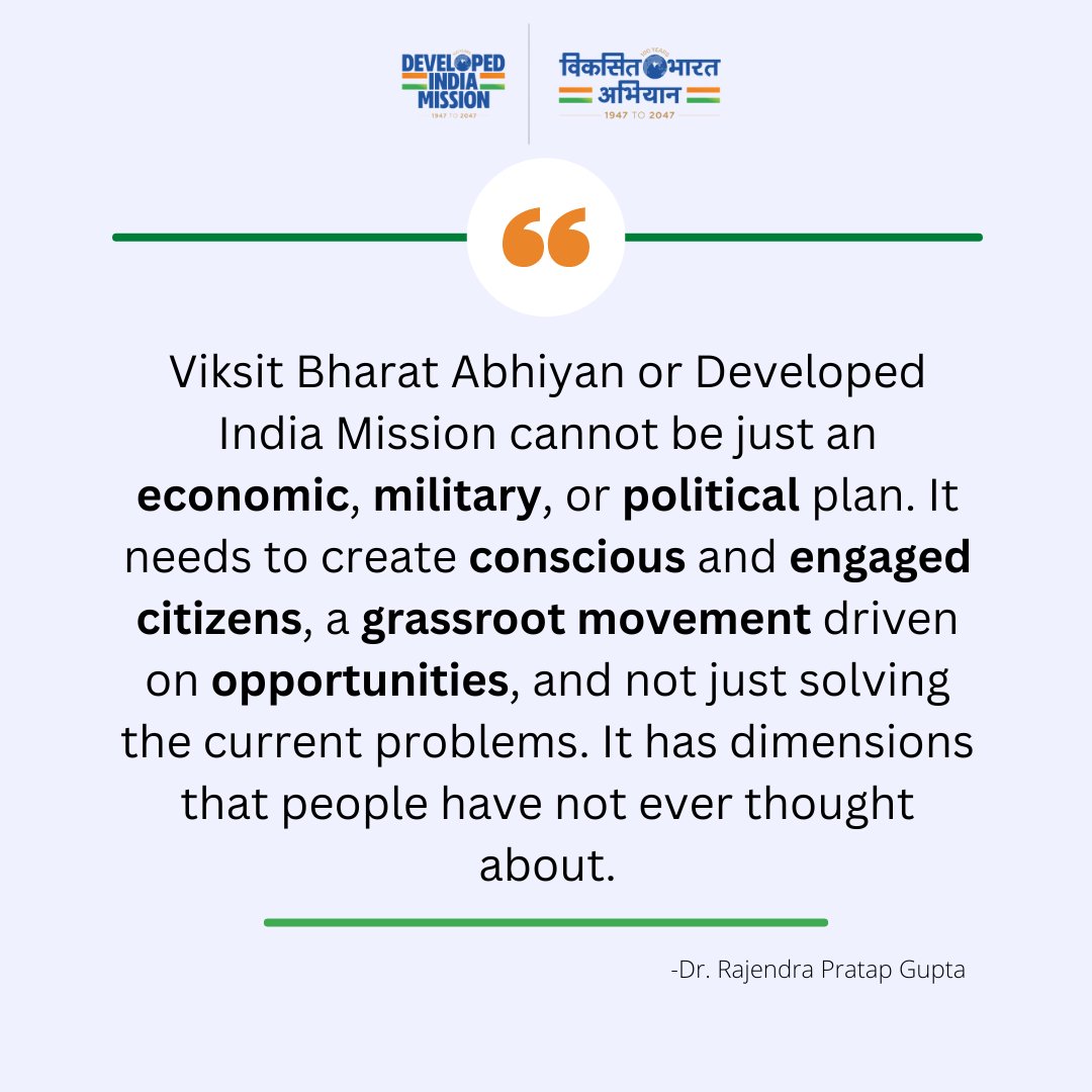 At this pivotal juncture, as India stands on the cusp of progress, it’s imperative to recognize that realizing this vision demands unwavering dedication, faith in India’s future, a deep-seated aspiration, and the vast potential, talent, and capabilities of its people, particularly the youth. Strong leadership is also essential to harness this potential. Achieving Viksit Bharat by 2047 requires concerted efforts akin to a national mission, characterized by a bold, ambitious, and transformative agenda communicated effectively to all stakeholders. Given that the youth constitute a significant portion of the population, their active involvement is pivotal in steering India towards this goal.