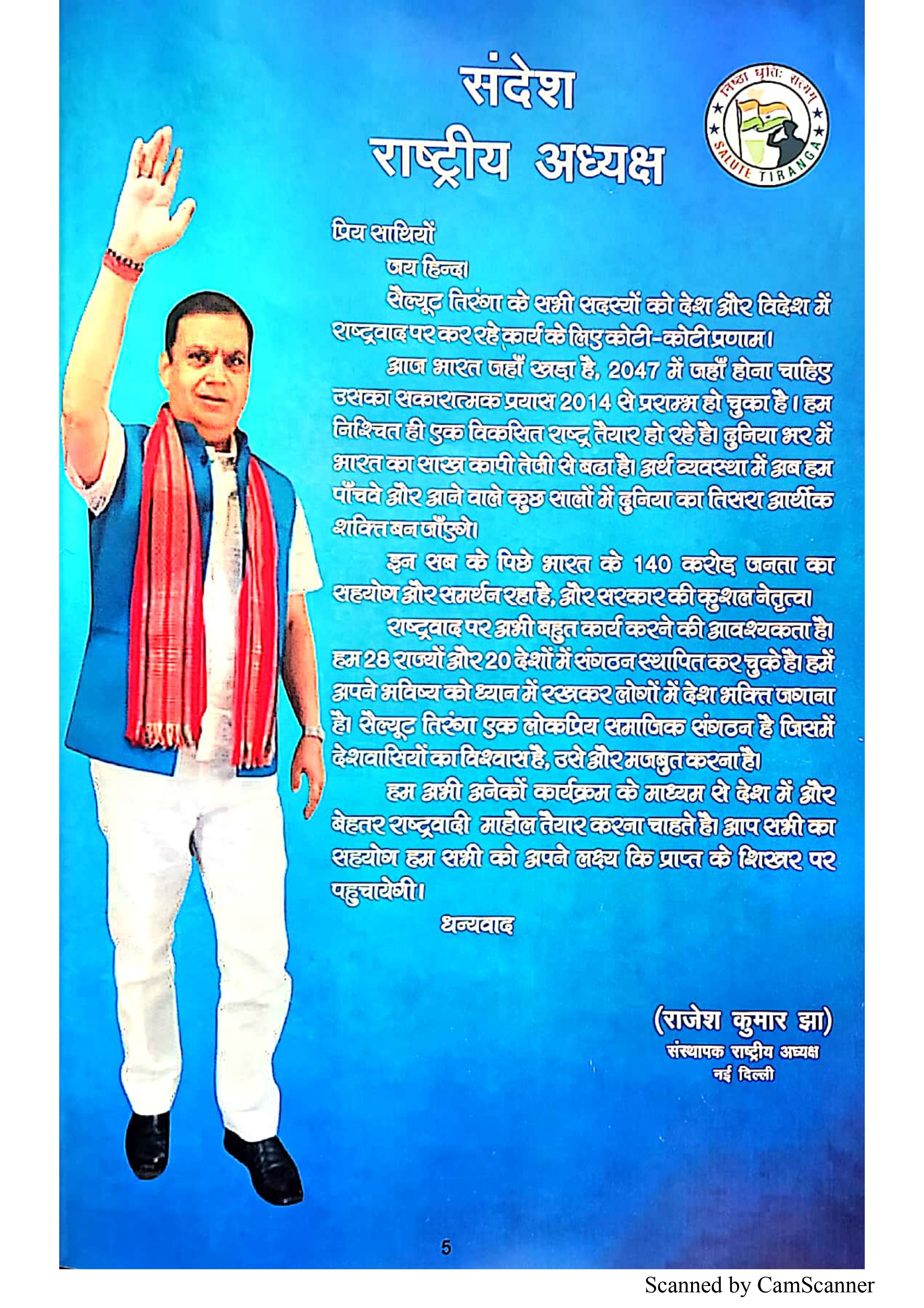 Mr. Rajesh Jha is the founder and National president of Salute Tiranga.